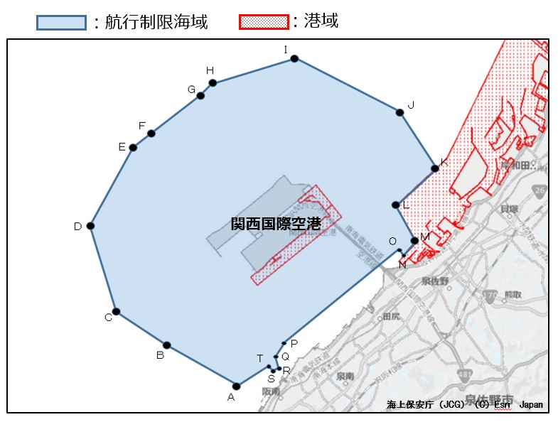 台風の接近等に伴い荒天が予想される場合、走錨が原因とされる事故の防止対策として、関西国際空港の陸岸から3海里(約5.5キロメートル)の範囲は船舶の航行を制限する。神戸空港や堺泉北港桟橋については2~3海里内に「錨泊自粛勧告」。これに伴い、関空周辺では航行が制限される海域を視覚的にわかりやすくするため、航海用レーダーなどの画面上に「バーチャルAIS航路標識」を表示。