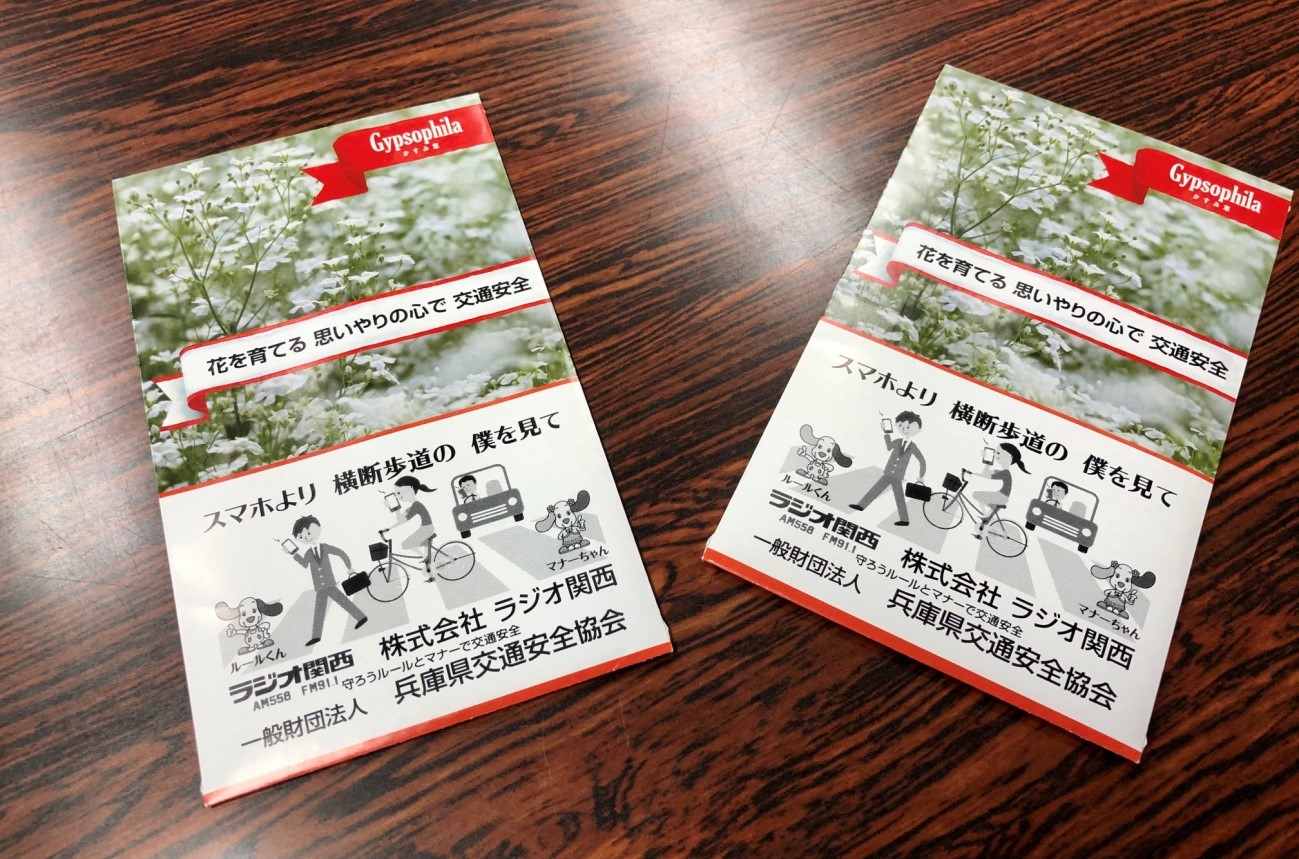 今回作製された「花の種」のパッケージには、「スマホより横断歩道の僕を見て」「事故のない 明るい兵庫は あなたから」「夕暮れの 一番星は 反射材」など交通安全標語が並ぶ。