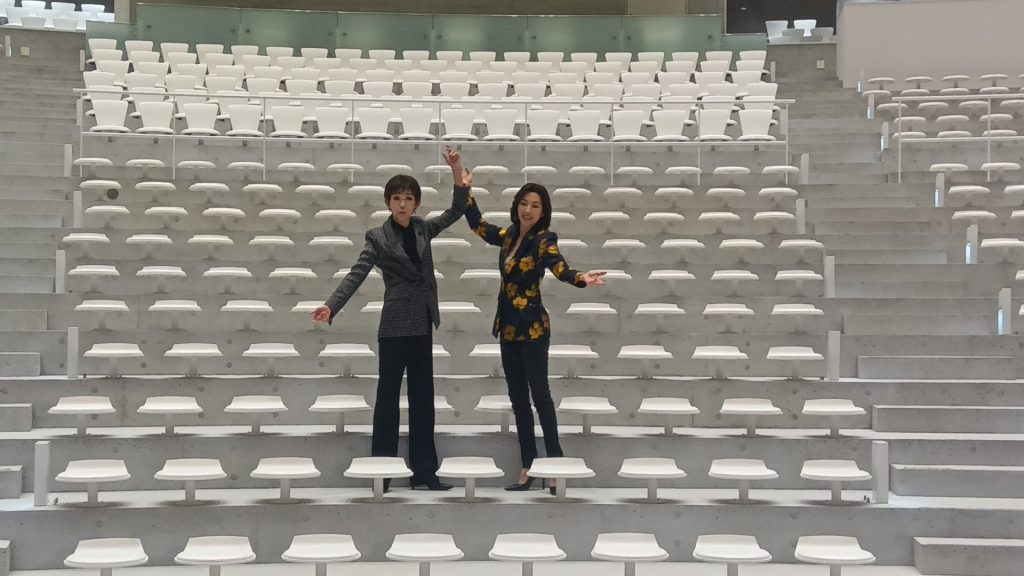 この日、往年のトップスター・真琴つばささん(元・月組)、姿月あさとさん(元・宙組)が夢洲を訪れ、完成したばかりのシャインハットに足を踏み入れた。