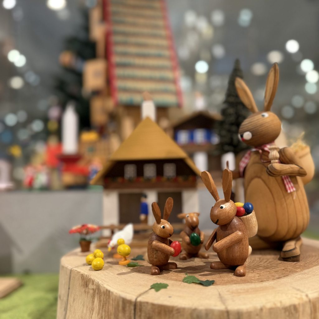 ちょうど3月からは、春の展示に模様替え。イースター・収穫祭にちなんだ、たまごやうさぎのカラフルでかわいいおもちゃたちがみなさんを待っています。