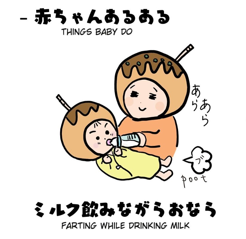 たこ焼きを頭からかぶったママのキャラクターが印象的なたこやきさんのInstagram(@takoyakikaburi)では、育児や日常をユーモラスに切り取った育児漫画や息子さんの成長記録のイラストを見ることができます。