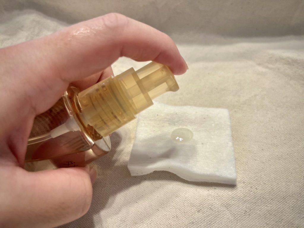 蓋を開けると、こちらもポンプタイプになっています。通常は、髪を洗いタオルドライの後にこちらのヘアセラムをつけてドライヤーで乾かしたり、乾いた髪にも使用できるそうですよ。ワンプッシュで1cmくらい出ました。
