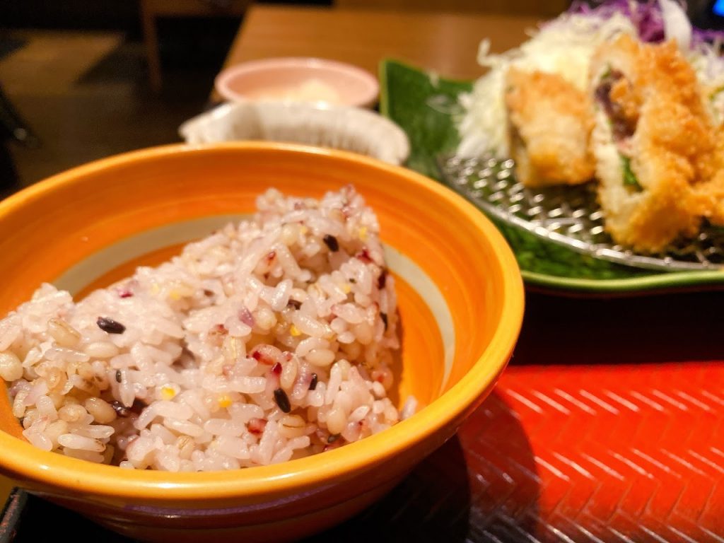 五穀ご飯は、プチプチとした素朴な食感が楽しい! ザクザクの鰹の梅はさみ揚げとのバランスはバッチリです。