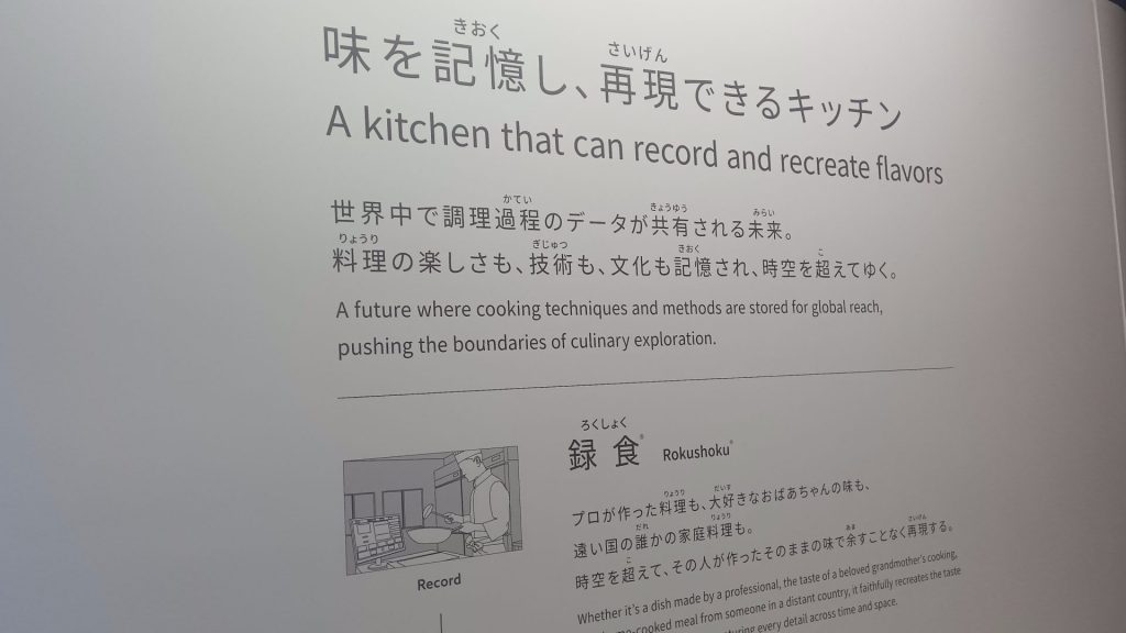 カメラやセンサーを駆使して具材を入れるタイミングや水分蒸発量など、詳細な調理データを記録し、誰でも同じ料理を再現できるキッチンシステムを提案。