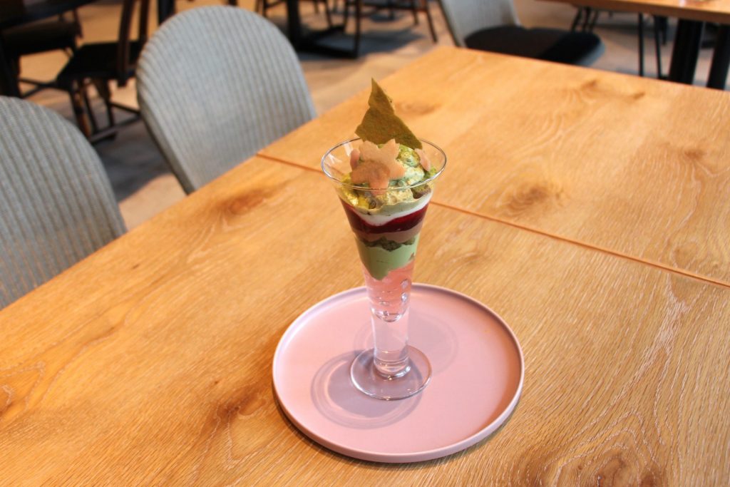 会期中、併設ショップで作品に登場する着物の柄をモチーフにしたオリジナルグッズを販売するほか、館内カフェレストラン「ミュゼカラト」では、松園が描いた桜をイメージした「桜と抹茶、小豆のアンサンブルパフェ」を提供する。