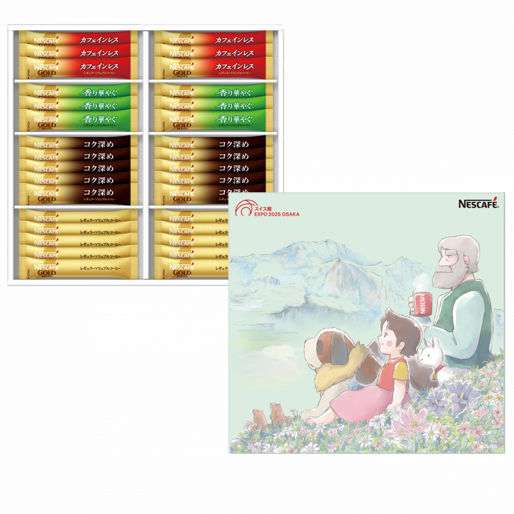 「アルプスの少女ハイジ スティックブラックギフト」(ネスカフェ ゴールドブレンド スティックブラック 4バージョン60本・税込5000円)とともに