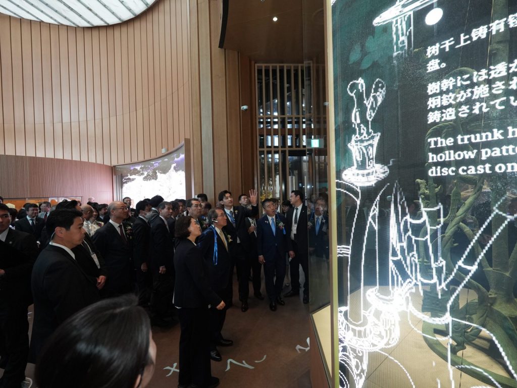 中国パビリオンは 3500平方メートルの面積で、大阪・関西万博の海外パビリオンでは最大規模。「人と自然の生命共同体を共に構築〜グリーン発展の未来社会」をテーマに、展示では、中国の歴史・文化、自然との調和、最新のスマートシティの未来像などを3部構成で紹介する。