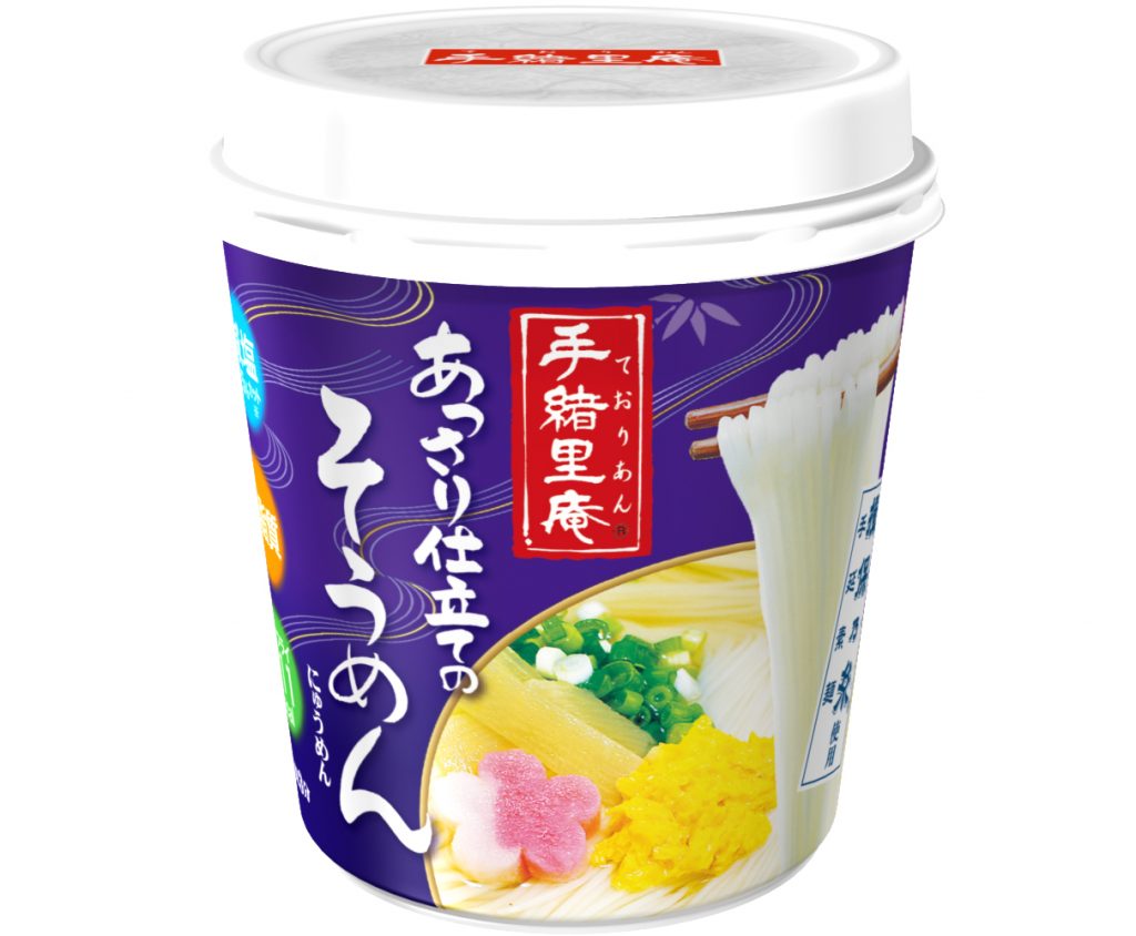 対象商品は、ヤマダイ(茨城県)のノンフライ和風カップ麺ブランド「手緒里庵」シリーズの「あっさり仕立てのそうめん」と「梅しそそうめん」です。どちらも減塩25%をキープしつつ、スープのうまみバランスを見直して、より幅広い世代が楽しめる味わいに仕上げたといいます。