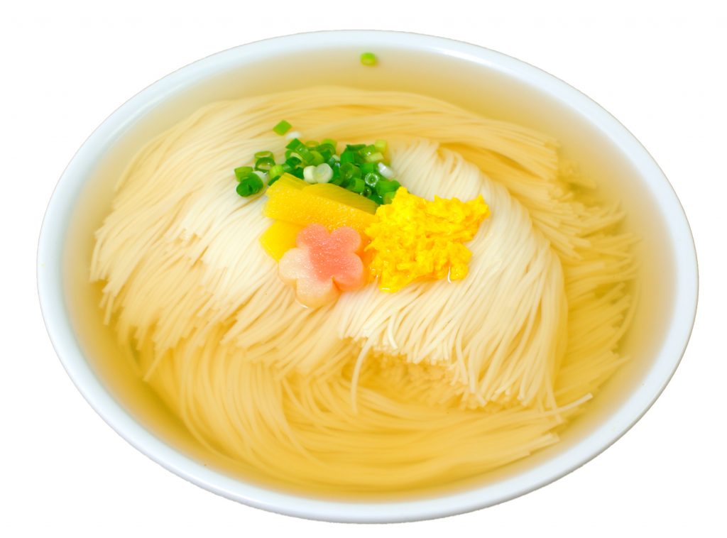 スープ(そうめんつゆ)は、「あっさり仕立てのそうめん」が、かつお節やシイタケ、昆布のうま味を加えたもの。一方、「梅しそそうめん」は、梅の酸っぱさと、かつお節・昆布のだしで仕上げられています。