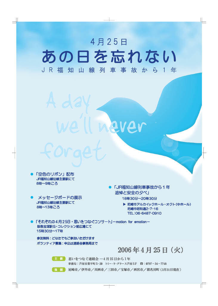 《JR福知山線脱線事故17年》”栞”の意味、かみしめて・・・安全願い「空色の栞」沿線で配布