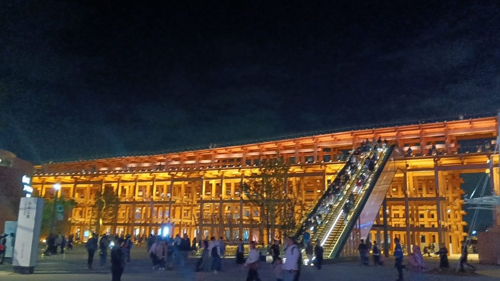 2人は日本館やウーマンズパビリオンなどを見学。シンボルの大屋根リングの屋上デッキ・スカイウォークから会場を眺め、「想像以上の素晴らしさ。夜の雰囲気も素敵」と感想を述べた。