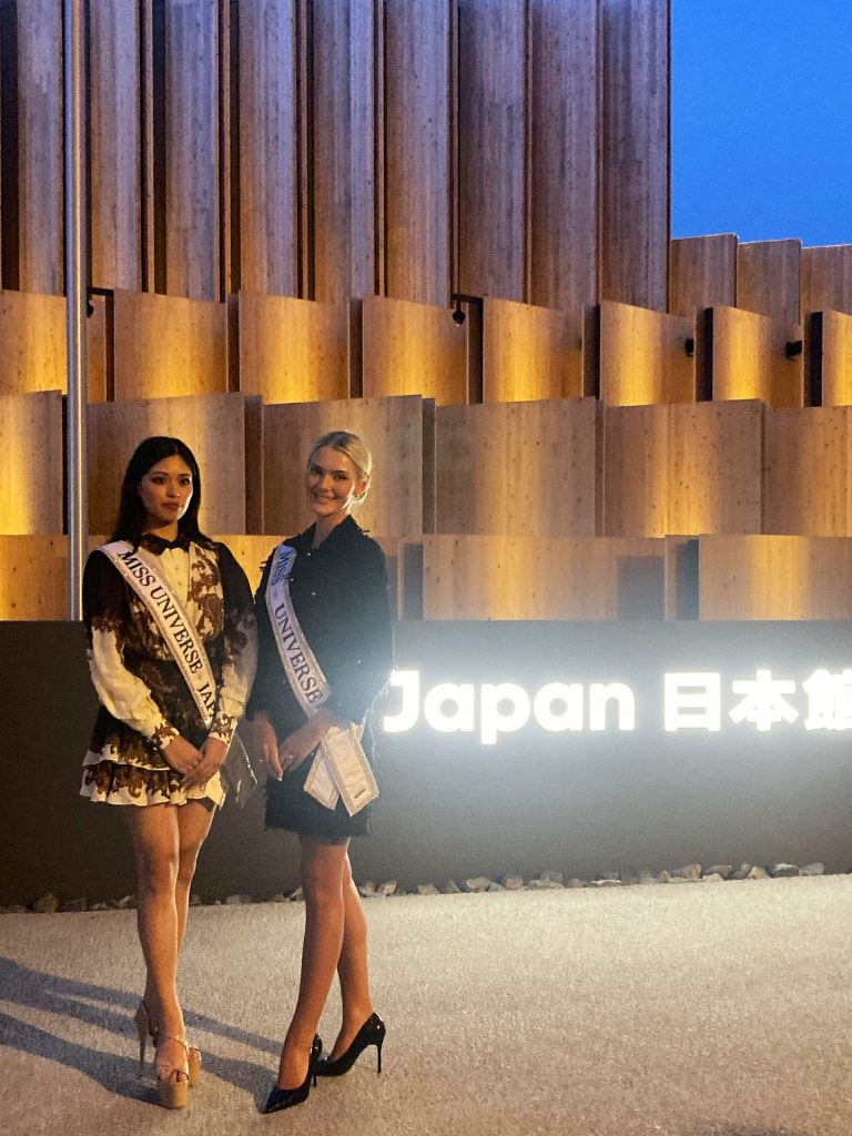 ミス・ユニバース2024世界代表のビクトリア・ケア・テイルヴィヒさん(デンマーク出身)、日本代表のチャクラボルティー雅(かや)さん(神戸市出身)が24日、大阪・関西万博会場の夢洲(大阪市此花区)を訪れた。