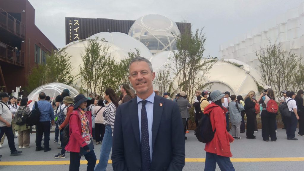 スイス政府代表のマヌエル・サルクリ氏はラジオ関西の取材に対し、「毎日、たくさんの方々にお越しいただき、じっくりとパビリオンの中で学ばれているので、予想以上に滞在時間が長い。私たちの思いが伝わったとみている。ハイジやアルプスの山などの親近感に始まり、世界最高レベルの大学や研究機関、スタートアップ企業を紹介するという構成が功を奏した」と手応えを語る。