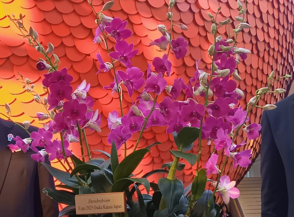 パビリオンでは4月末、開館セレモニーが開かれ、大阪・関西万博のために特別に品種改良した記念のランの花「デンドロビウム EXPO2025 大阪・関西・日本」など3つの品種がお披露目された(いずれも5月10日まで展示)。