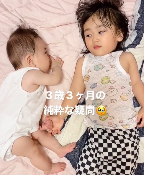 寝転んでいる生後6カ月の弟を見て、3歳の姉が突然放った疑問に母も爆笑!「そりゃ疑問だよね」 2025/05/08 お揃いの服を着て、仲良しなふたり(提供:@ot_2021.3さん) Prev 1/7 Next 記事を読む 関連記事 「だっとぅ~」ママを引き止める1歳娘が433万回再生「可愛すぎて倒れそう♡」 2025/03/19 お座り練習中の赤ちゃんに、ママ「できたらいいね」→そのお返事に爆笑「うそやんw」「最高♡」 2024/12/21 生後1カ月の赤ちゃん→白目姿から4カ月後…衝撃のビフォーアフターに「ギャップにやられました」 2024/12/08 18歳差の兄からミルクをもらう赤ちゃん→わざとミルクを拒否!?「可愛いから許して〜」 2024/10/05 ニコニコご機嫌な7カ月の赤ちゃん→振りかえったら…!目を見開いてビックリ「ママじゃなかった?」 2024/08/31