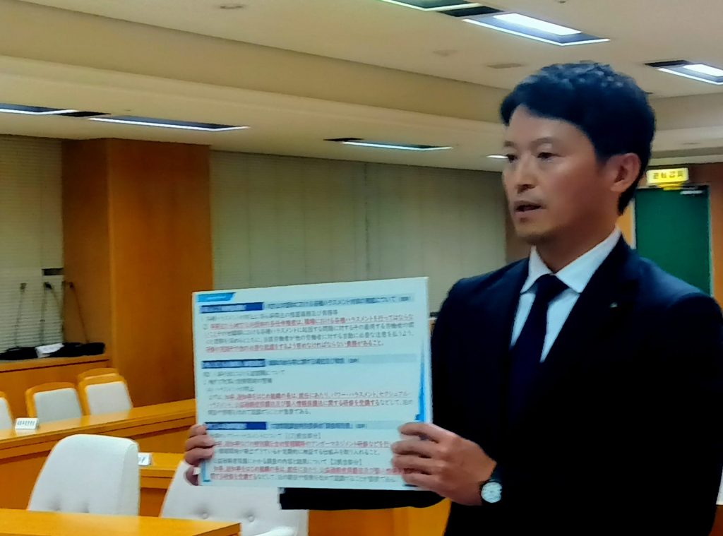 斎藤・兵庫県知事「怒り抑える“6秒ルール” 実践」4時間のハラスメント防止研修終え… 2025/05/13 (写真4枚) 斎藤元彦・兵庫県知事が内部告発された問題をめぐり、斎藤知事や県幹部らに向けたパワーハラスメント防止研修が12日、開かれた。 記事全文を読む 関連記事 斎藤・兵庫県知事 ハラスメント防止研修、今だに受講せず「放置しているのではない」 2025/04/17 「その言動パワハラになってない?」 昭和の名曲から学ぶ人間関係・おねだりの許容範囲 2024/07/26 パワハラ「重く受け止め」謝罪、公益通報対応「適切」斎藤・兵庫県知事、第三者委報告に 2025/03/27 兵庫県、公益通報めぐり改善策公表「斎藤知事のパワハラ、確証なく…」外部窓口設置 2024/12/12 斎藤・兵庫県知事、公益通報者保護「消費者庁、一般的な法解釈」公式見解と異なり「対応は適切」 2025/05/09