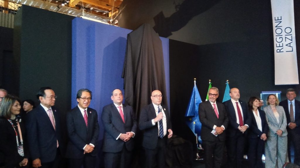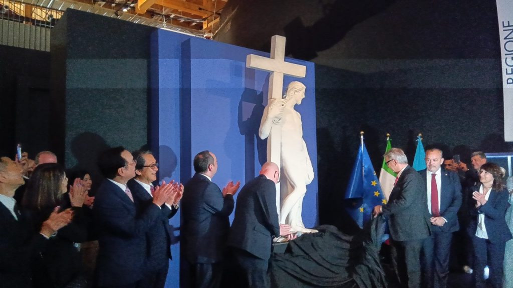イタリアパビリオンは、週替わりで国内各州の魅力を発信、一部の展示も入れ替えている。像はラツィオ州のテーマウィークが始まるのに合わせて展示するため、5月7日にイタリアを出た。