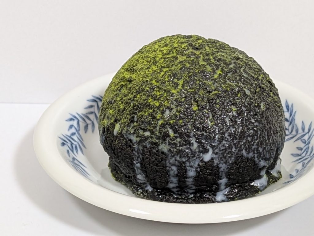 実際に手を取ってまず驚いたのが、その見た目! 深緑色をした分厚いクッキー生地の上に抹茶パウダーが振りかけられている姿は、まるで苔玉(こけだま)のよう。新緑が眩しい、いまの季節を表しているかのような斬新なビジュアルです。
