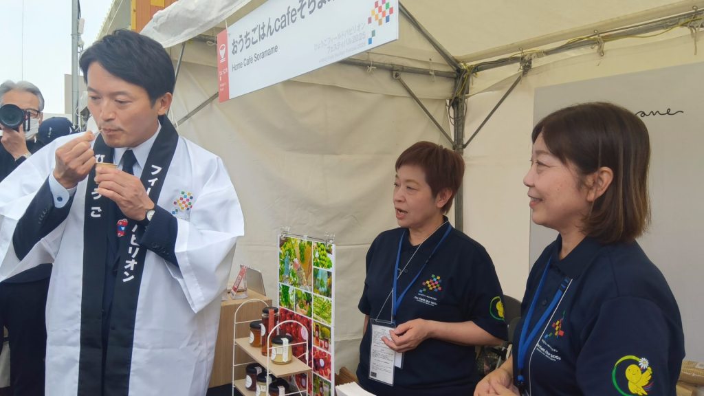 斎藤知事は「知事に就任してから大阪・関西万博を兵庫県でも盛り上げたいとゼロからスタートした。これを機会に、国内外から兵庫に来ていただきたい。そして兵庫県の素晴らしいものを知っていただきたい」と述べ、県内の観光地、地場産業の魅力発信を呼び掛けた。