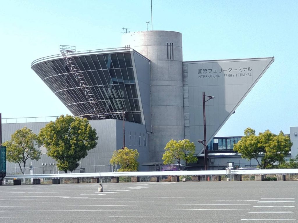 「パンスターミラクル」号の乗下船が行われる大阪港国際フェリーターミナルは、建築家・安藤忠雄氏の設計により1996(平成8)年に施工。逆円錐型部分はガラス張り、打ち放しコンクリートの建物が特長の外装だけでなく、内装も含めて、近隣建築物のなかでもひときわ目を引く、ランドマーク的なデザインを持つ。国際交易や交流の海の窓口は、イミグレーションや税関業務も担う。最寄り駅は大阪メトロ中央線・ニュートラムの「コスモスクエア」駅。ターミナルまでの無料シャトルバスはコスモスクエア駅から15分間隔で運行され、所要時間は約5分。下船後、ターミナルから駅へ向かうバスの案内は館内放送で知らせている。