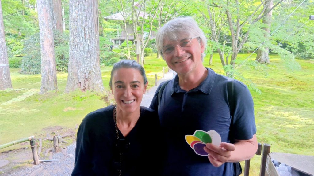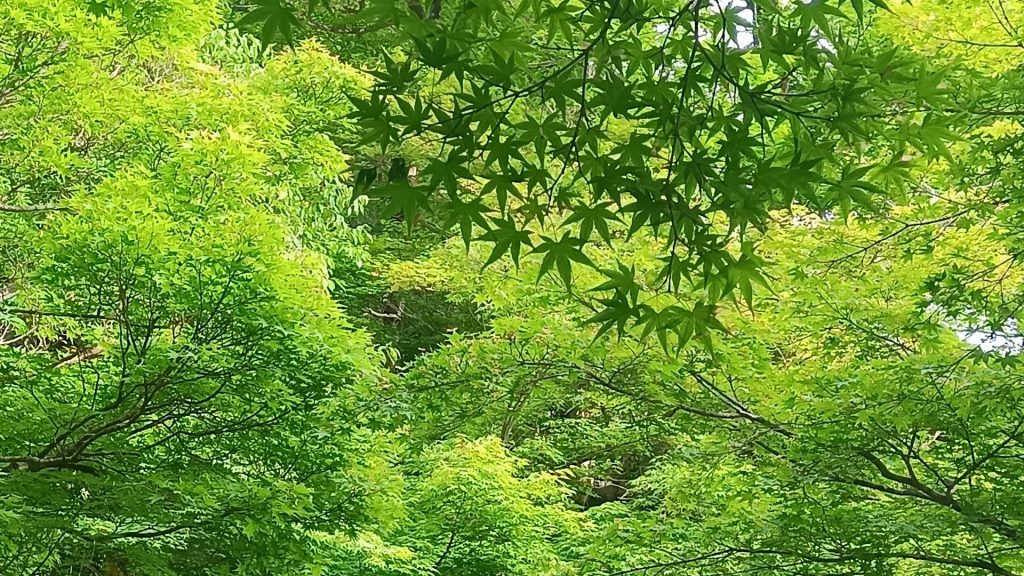 スペイン・マドリードから関西旅行に訪れた夫妻は「美しい緑のモミジを初めて見た。また荘厳なセレモニーに接することができた」と満足げに話した。