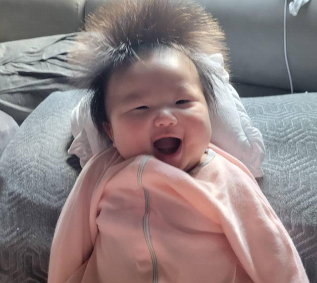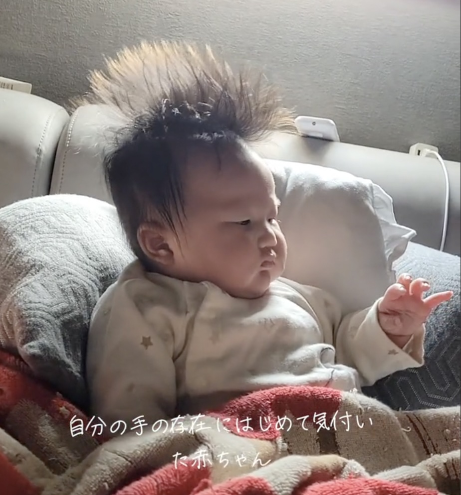 3カ月の赤ちゃん、ふと発見したのは…→意外なところに注目集まる 「ケサランパサランに似てる」