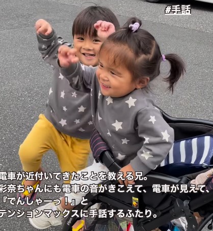 難聴の2歳妹に、4歳兄があることを手話で知らせ喜ぶふたり→「こんな日がくるなんて…」と母 2025/06/10 (写真8枚) 難聴のある2歳妹に、電車が近づいてきたことを知らせる4歳のお兄ちゃん。数秒後、大好きな電車がふたりの目の前を通過すると…!?手話で喜び合うきょうだいの動画がInstagramで話題です。動画には「癒されます♡」「ふたりの笑顔が素敵!」と反響が寄せられています。 記事全文を読む 関連記事 「だっとぅ~」ママを引き止める1歳娘が433万回再生「可愛すぎて倒れそう♡」 2025/03/19 「ずっと会いたかった…」生後まもない妹を抱っこ→4歳姉の嬉し泣きに「きれいな涙」「優しいねぇね」 2025/03/13 パパの個性的な歌声に三つ子ちゃんの反応は…?可愛らしい表情の変化に560万回再生「幸せが3倍」 2024/12/08 寝ているはずの双子ちゃん→寝室から物音が…!内緒で起きていたふたり「これは怒れない」 2024/11/07 気合を入れてセミ捕りに行く兄弟→ふたりとも号泣!?まさかの結果に「漫才みたいw」「最高の夏!」 2024/10/21