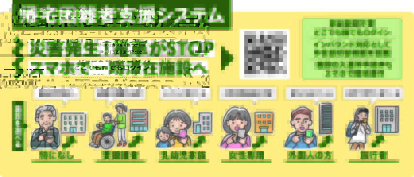 同システムはスマートフォンを使って避難者を安全な一時滞在施設へと導く全国初の取り組み。主要駅や商業施設のデジタル広告や立て看板に表示された専用の2次元コードをスマホで読み込み、予約すると、ナビ機能で施設まで道案内してもらえる。システムは2024年4月1日から使えるようになっているが、これまで実際の運用は行われていない。