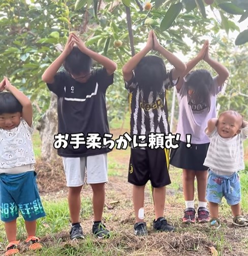 今回の動画は、5きょうだいの両親が運営する柿農家(@nishimi_kaki_nouen)と知人の米農家(@hinonouenn)で共同投稿されました。動画を撮影したパパに話を聞きました。おじいちゃんやおばあちゃん、パパの兄弟など12人の大家族で柿農家を営みながら、5人のお子さんの子育てをされています。