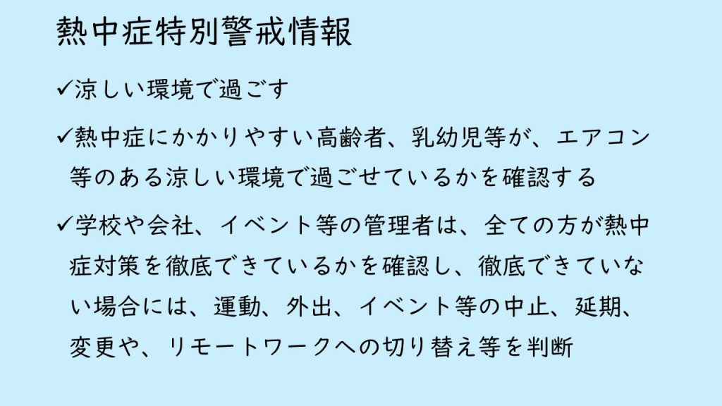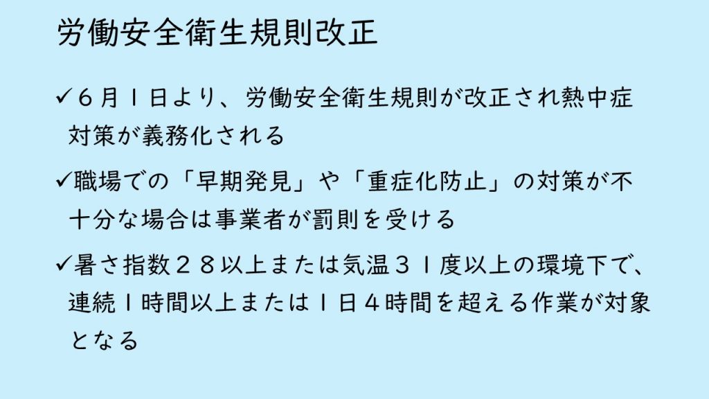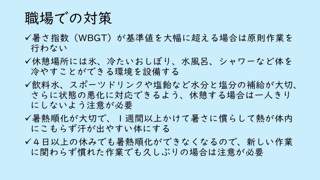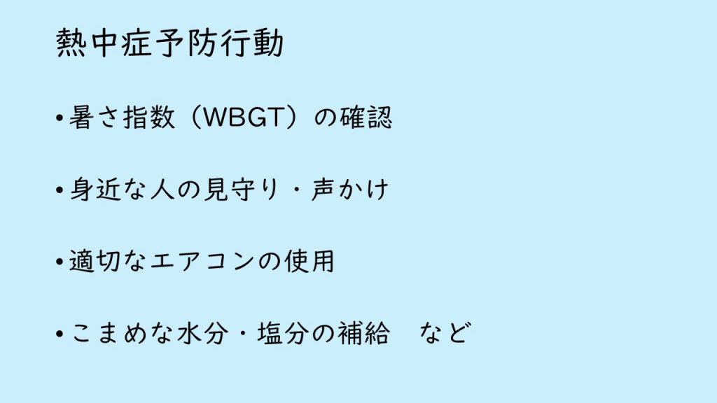 熱中症に「なったらどうするではなく、ならないように」 兵庫県医師会が対策・予防を呼びかけ 2025/06/13 兵庫県医師会の記者会見スライドより Prev 1/8 Next 記事を読む 関連記事 “着る冷凍庫”とは一体? 職場の熱中症対策義務化で注目集める 「屋外フェスにも使える」とメーカー 2025/06/10 コロナ禍の夏、熱中症にかからないために 梅雨明け前後にできる自己防衛策 2020/07/09 救急隊員に聞く 熱中症のリアルな現場「およそ半数が屋内で発症」 身を守る秘訣とは 2024/07/18 夏休みは【子どもの熱中症】に注意!大人との差+7度は冬用コート1枚分 夏季6割が“猛暑日状態”に 2024/07/17 「夏のアスファルトは60℃近く」 熱中症が多いのは7月 神戸市が12種の個性派ポスターで対策呼びかけ 2022/06/26
