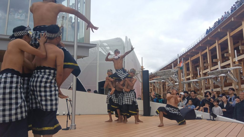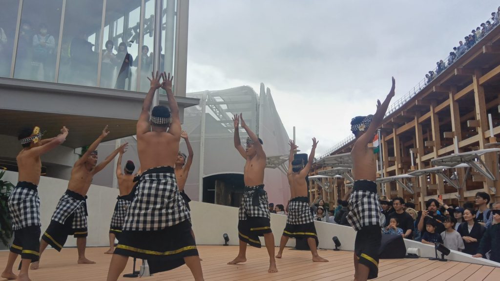 5月末、大阪・関西万博のパビリオン前で繰り広げられた伝統文化ステージには、たくさんの来場客が詰めかけた。