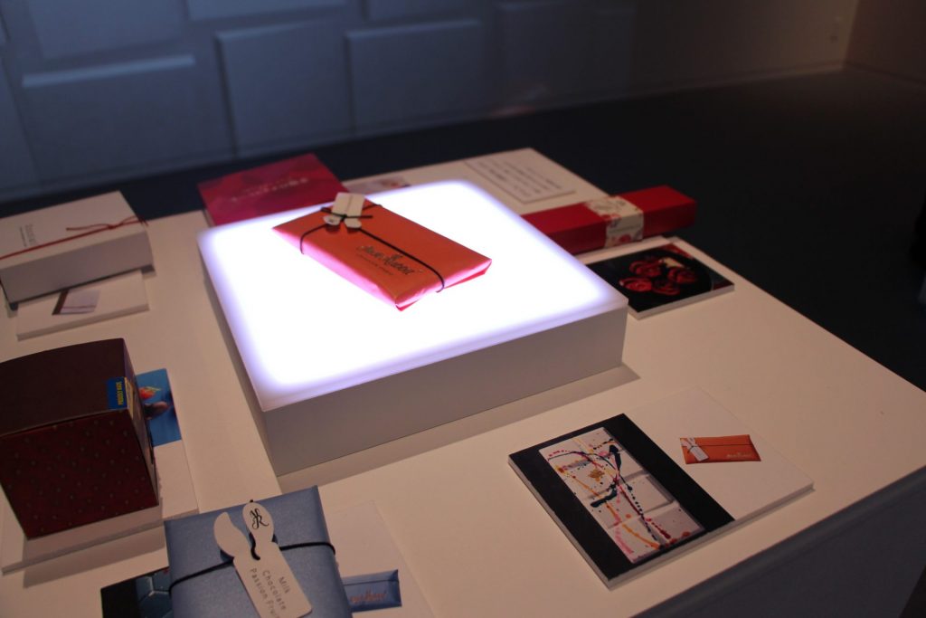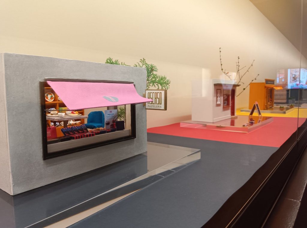企画展「空想のチョコレートタウン~ミニチュアチョコレートショップの街~」では、同ミュージアムを運営する通販大手「フェリシモ」(同区)のチョコレートバイヤーが実際に訪れた各国のショップ16軒をミニチュアで再現。極小の商品や食器、テーブルと椅子などが並ぶ「店」もあり、眺めていると、小さくなった自分がウィンドーショッピングしているかのよう。店の説明と商品パッケージの紹介もあり、「いつか現地へどうぞ」と誘われている気分になる。