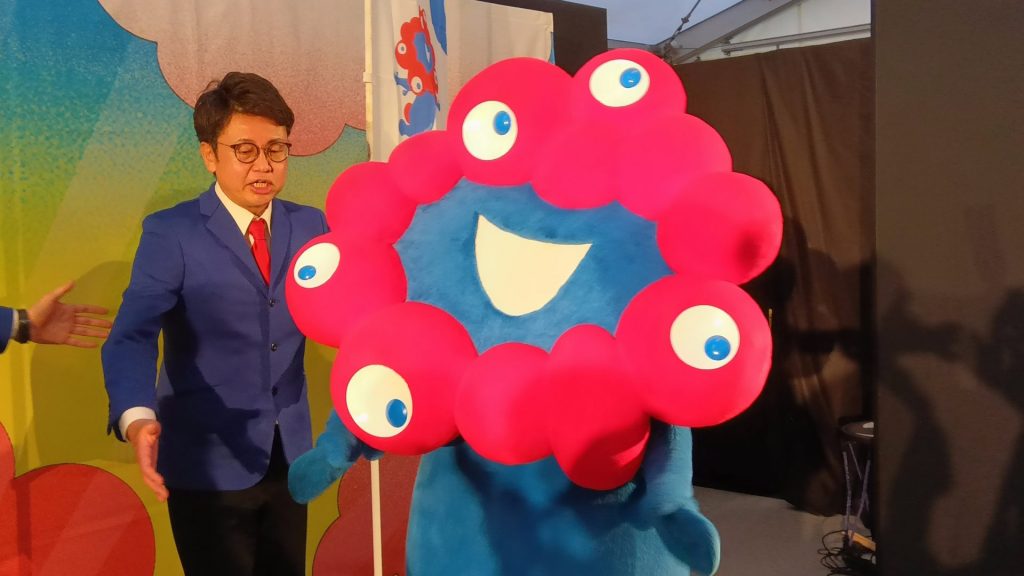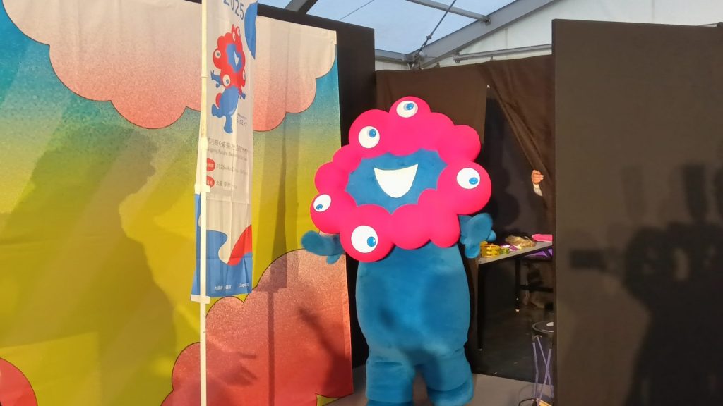 銀シャリは2023年、万博開幕500日前にPR動画に出演、ミャクミャクの顔をかたどったぬいぐるみをかぶる演出はあったものの、ミャクミャク“本人”に会ったのは初めて。