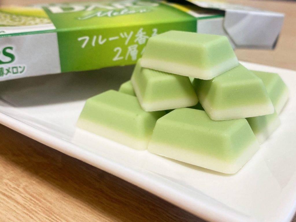 上層がメロン味、下層は白いダースのミルクチョコレート