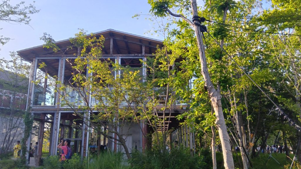 トークセッションの会場となった「森の集会所」は、奈良県十津川村の旧折立(おりたち)中学校の木造校舎を移築し、開放的な空間にアレンジした。