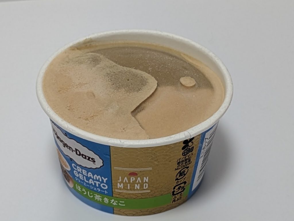 こちらはほうじ茶ジェラートときなこジェラートを組み合わせた商品で、いちご練乳みるくの爽やかさとは打って変わって、香ばしさ・ほろ苦さを感じる1品となっています。