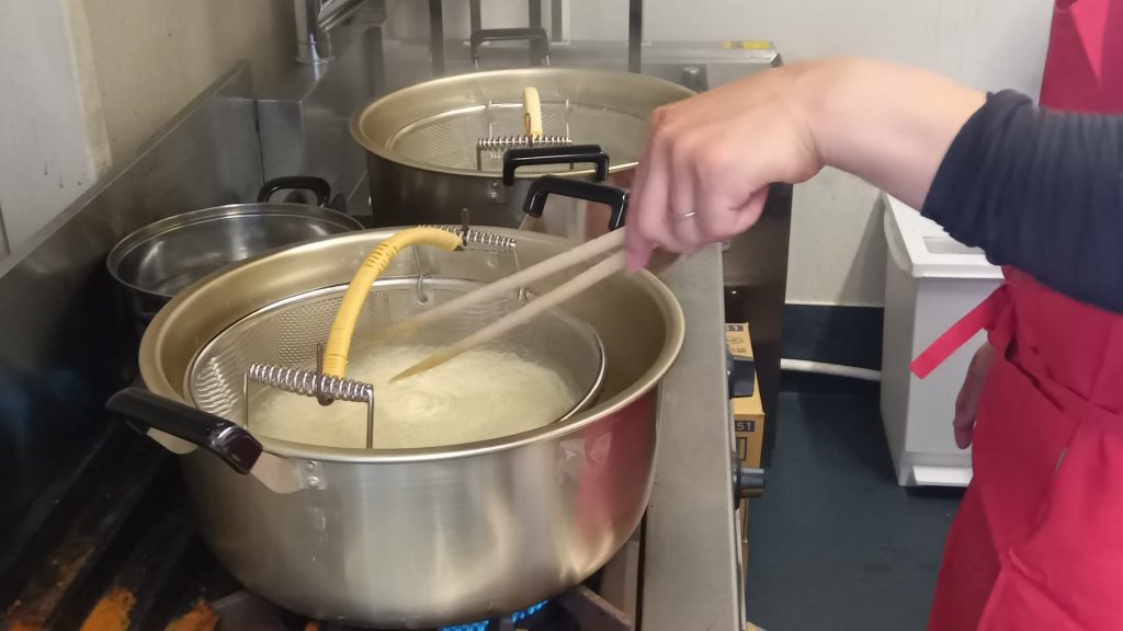 麺生地をねじり、じっくりと時間をかけ、徐々に伸ばしていく古来からの手法を守っている。