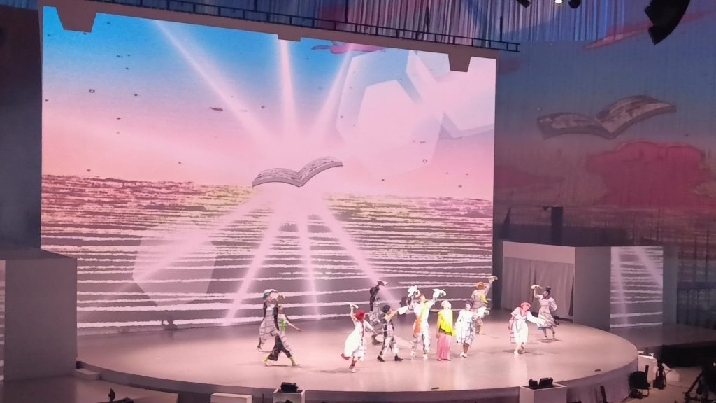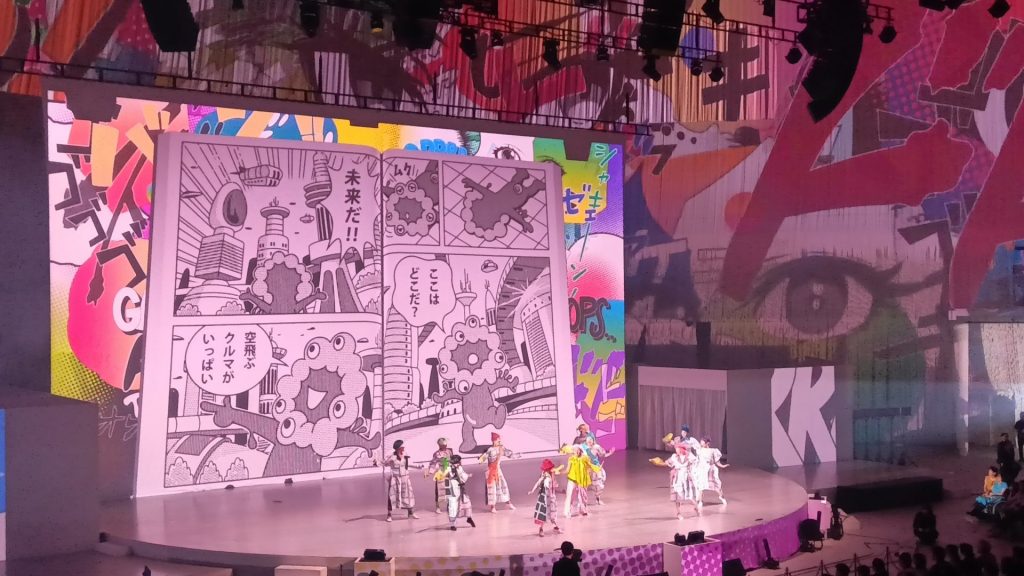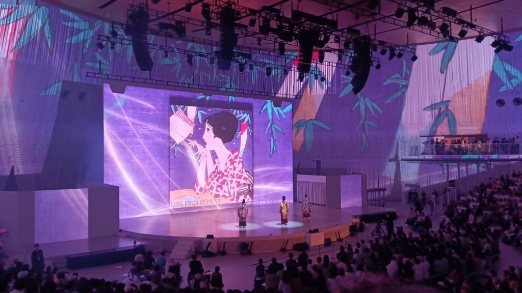 その後、雅楽と現代音楽、さらに日本が誇る文化・マンガやダンスを融合させた舞台演出で、日本の伝統を未来へ継承する姿を表現した。