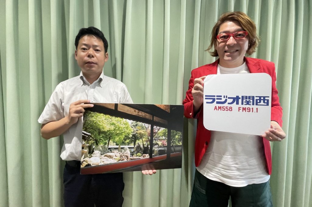 神戸市文化スポーツ局 文化財課 埋蔵文化センターの平本岳志さん(写真左)、『サンデー神戸』パーソナリティーのクマガイタツロウ(同右)