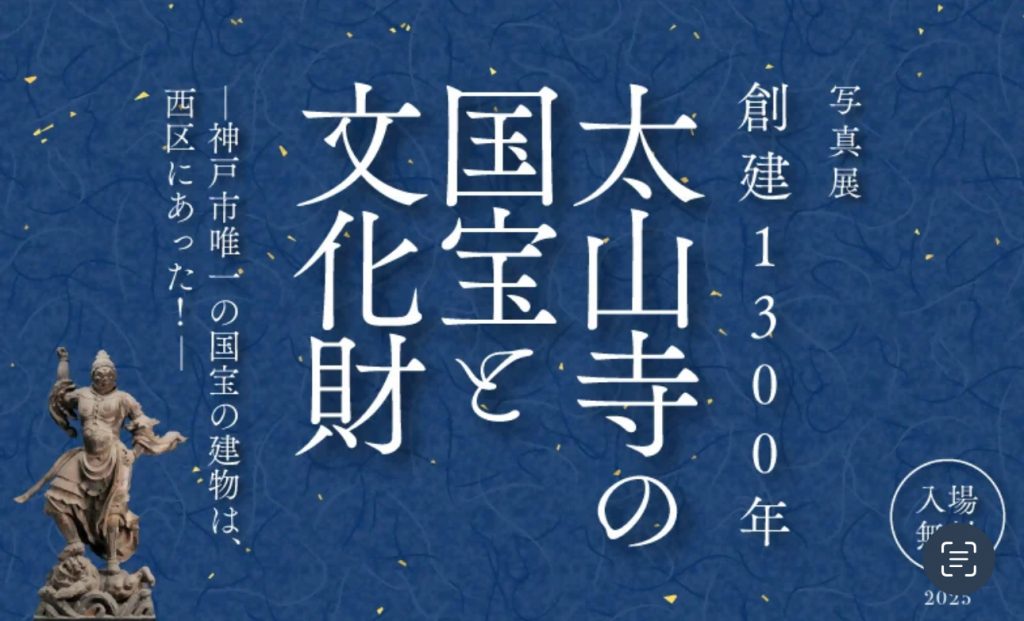 神戸の国宝『太山寺』の魅力を堪能 文化財の数々が楽しめる写真展開催 7月31日まで 2025/07/14 (写真3枚) 神戸市には、国宝「太山寺」の本堂をはじめ、多くの歴史遺産が点在しています。7月31日(木)までの期間、阿弥陀如来坐像や庭園などを有する太山寺の魅力を伝える写真展『創建1300年 太山寺の国宝と文化財』が、西神中央ホールにて開催中です。 記事全文を読む 関連記事 国宝の甲冑類の半数が春日大社に集結! 「究極の国宝 大鎧展」 モンスターハンターとのコラボも 2025/07/09 至宝の飛鳥仏2体が同じ会場に 「七支刀」初のCT調査結果も公開 奈良博「超 国宝」展 後期も盛況 2025/05/25 「これ、教科書で見た!」 展示品すべてが国宝 圧巻の展覧会 大阪市立美術館「日本国宝展」 2025/05/01 金印に飛鳥仏、風神雷神図屏風… 今春、“ザ・国宝”が関西に集結 万博関連など豪華展覧会が次々開催 2025/01/18 神戸で今年も「夏の生きものクエスト」 調査対象は15種 外来種のリスクなど学ぶ場に 2025/06/13