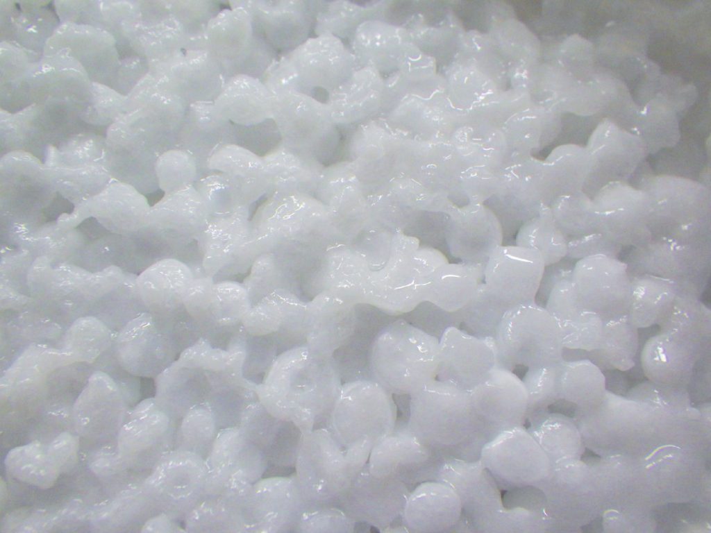 【担当者】 それが、塩化カルシウムが水に溶けた証拠です。塩化カルシウムの粒は最初はサラサラの粒なのですが、空気中の水分を吸収、つまり吸湿すると固まってきて、最後は溶けて水になります。