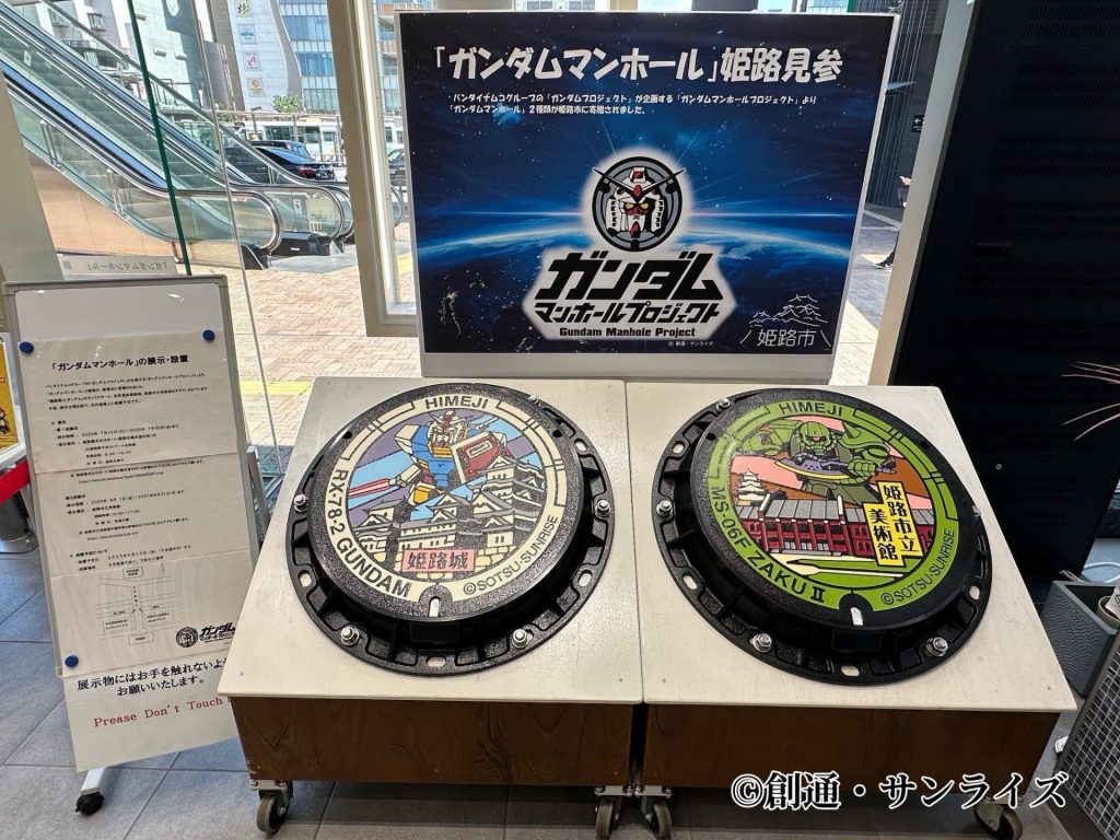 「ガンダムマンホール」の第1回展示は姫路観光なびポート(姫路市観光案内所)内で7月30日まで(8:30〜18:30)、第2回展示は姫路市立美術館で8月1日から8月31日まで(10:00~17:00)行われます。