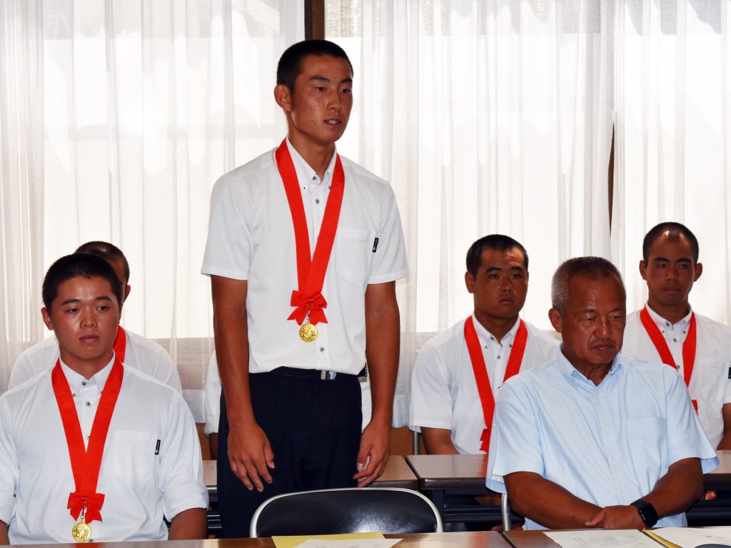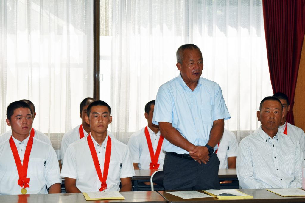 岡田監督は挨拶で、「本当に子どもらがよく頑張って、前任校(履正社/大阪)でもなかった秋・春・夏と(県内で)一度も負けずに20連勝させてもらった。苦しい試合もあったが、なんとか粘り強く頑張ってくれた」と選手たちを称賛。