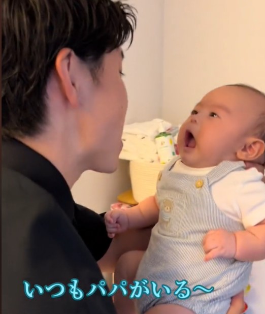 会えた嬉しさが全身から伝わるリズミカルパパと、生後5カ月にして表情豊かにパパの愛情に答えるミニカル君の姿に、700件を超えるコメントが寄せられました。