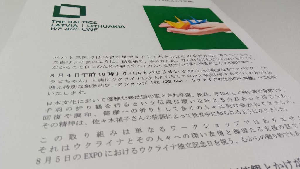 「ウクライナに届け、千羽鶴」大阪・関西万博バルト館 ウクライナにエール『WE ARE ONE』
