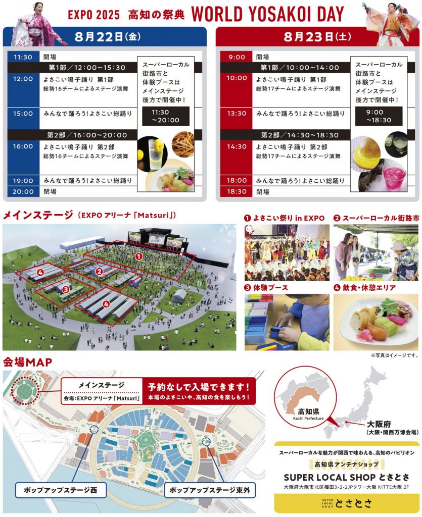 大阪・関西万博で「よさこい」を踊ろう! 国内外17チーム800人参加 「高知の祭典」22・23日 2025/08/07 土佐田舎寿司(高知県提供) Prev 1/14 Next 記事を読む 関連記事 【写真】「街路市」では高知グルメが勢ぞろい!芋けんぴ、しそジュース、土佐田舎寿司も 2025/08/07 全国の大学に広まる「よさこいサークル」なぜ? 高知発祥の伝統舞踊に学生達が“求めるモノ”とは? 2025/07/01 ユネスコ無形文化遺産に登録された「カフェ文化」を大阪・関西万博で オーストリア館 2025/07/02 ウクライナ・ナショナルデー「世界に人間らしさはあるか」ゼレンスキー大統領夫人訴え 大阪・関西万博 2025/08/06 チェコ・プラハから大阪・夢洲まで1万4000キロ、クラシックカー7台で走破!大阪・関西万博 2025/08/03
