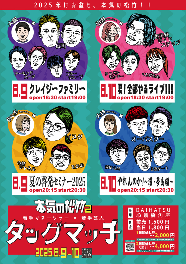 この夏は、お笑いライブバトル『本気の松竹2』の開催も控えている。同イベントは、松竹芸能大阪の若手マネージャー4名と、芸歴15年目以下の若手芸人がそれぞれタッグを組んでバトル。ライブをプロデュースして順位を競い合う。