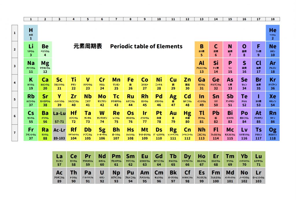 「~ウム」というのは金属を意味するラテン語です。中世ヨーロッパで新しい元素が次々と見つかっていったため、慣用的にラテン語の「~ウム」が用いられるようになったのだとか。