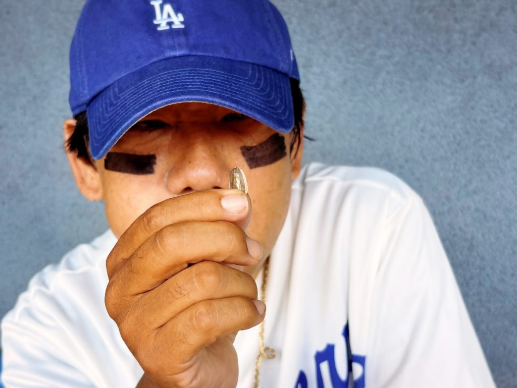 あれは、“ひまわりのタネ”の中身を食べて、殻を口から吐き出しているらしいのですが、日本の野球のベンチでは馴染みのないシーンです。野球どころか、日本じゃひまわりのタネ自体あんまり食べないですよね。でも、アメリカではコンビニでも普通に売っていて、スナック感覚で食べられているらしいんです。