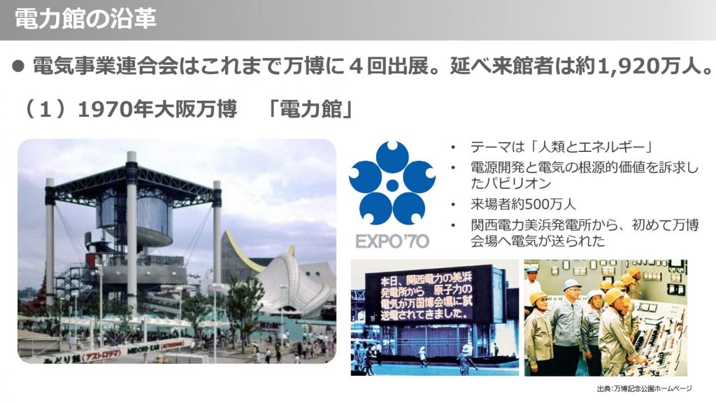 関西電力グループは、1970年の大阪万博(大阪府吹田市・千里丘陵)で福井県の美浜発電所から原子力発電の電気を会場に供給し、新たなエネルギーの時代を印象づけた。